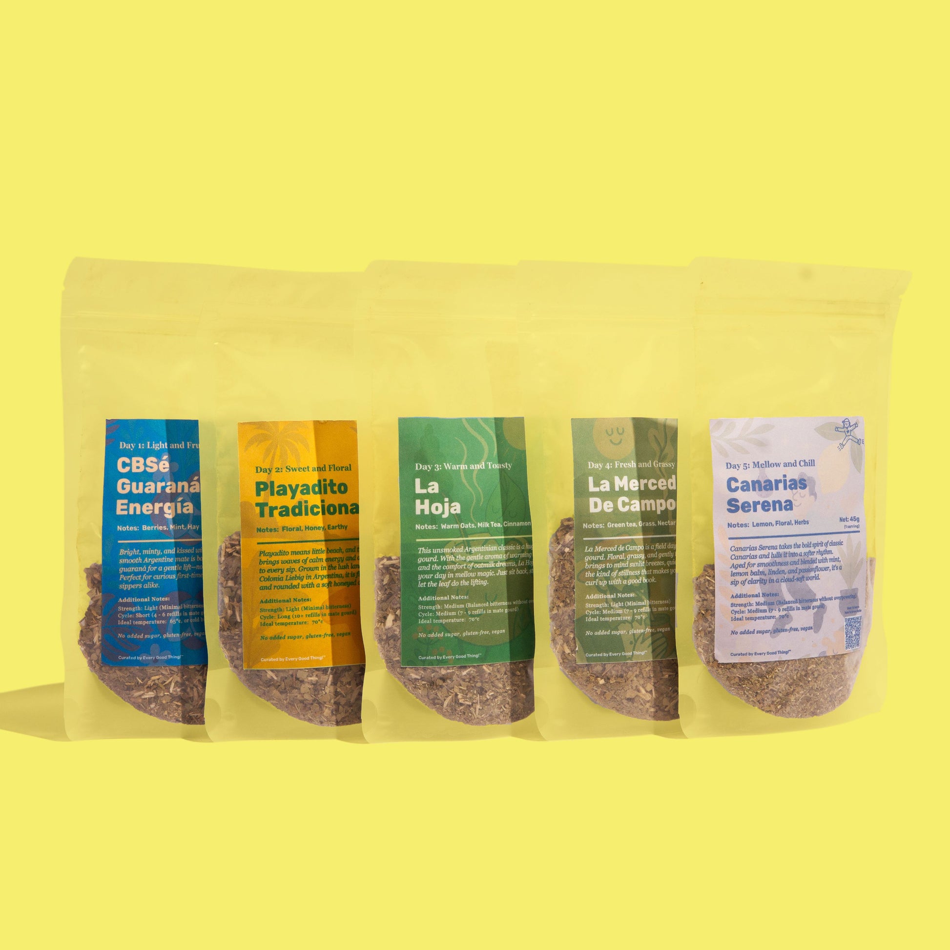 New to mate? We got you fam - with a curated set of 5 different mates, ranging in taste and strength. Explore what hits the spot for you, without having to commit to a full 500g bag.
